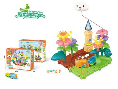 DIY拼插积木花园云朵城堡拼装电动火车轨道