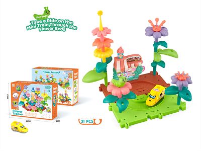 DIY拼插积木花园过家家拼装电动火车轨道